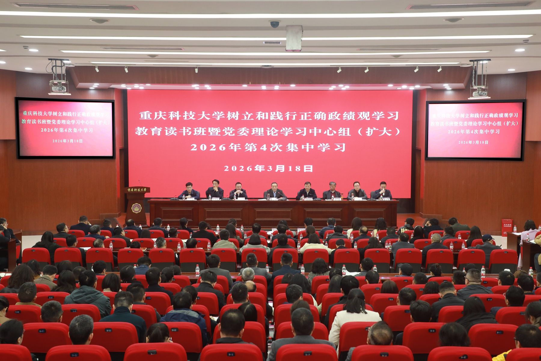 3月18日下午,学校在学术报告厅举行树立和践行正确政绩观学习教育读书班暨党委理论学习中心组(扩大)2026年第4次集中学习会。会议聚焦“深入学习贯彻习近平总书记关于树立和践行正确政绩观的重要论述,坚持实事求是、求真务实,为师生出政绩、以实干出政绩,推动学校‘十五五’开好局、起好步”主题开展学习。学校党委理论学习中心组成员,科级以上干部(含组织员、纪检员、巡察专员),科室负责人参加学习。党委书记黎德龙主持会议并作总结讲话。