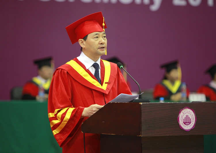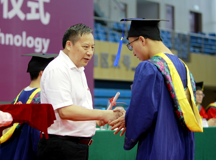 校长尹华川代表学校向圆满完成学业、即将踏上人生征程的毕业生们致以最热烈的祝贺和最美好的祝福!向为学生们的成长默默耕耘、倾心付出的师长、亲人和朋友们致以最衷心的感谢和最崇高的敬意!尹华川以“人生无畏 勇毅前行”为题向全体毕业生上了大学最后一课。他说,在这美丽的校园里,学校见证了你们的勤学不辍,开拓创新,学习成长的优秀足迹;你们也见证了母校的锐意进取、跨越发展,助力学校顺利通过本科教学审核评估,成功获批硕士学位授予单位,迈出了高水平应用型特色科技大学发展的坚实步伐。尹华川对即将毕业的同学们提出三点希望:第一,无畏平凡,追寻永不放弃的人生梦想;第二,无畏磨难,锤炼永不言败的人生力量;第三,无畏未知,开拓永无止境的人生可能。他鼓励同学们敢于向未知跨出一步,勇于突破经验的条框,打破思维的边界,以永不懈怠的探索学习之心迎接更多的人生可能、开拓更广阔的人生疆域,让融合创新为未来赋能!