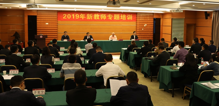 【宣传部 人事处】10月16日下午,2019年新入职教师校徽授予暨专题培训开班仪式在办公楼105会议室举行。全体在家校领导、2019年新入职教师、各二级学院(部)主要负责人、学校有关职能部门主要负责人参加了开班仪式。校长尹华川主持开班仪式。