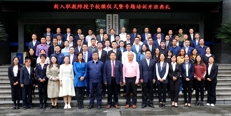 尹华川在主持仪式时说,近年来,学校大力实施“人才强校”战略,不断完善人才政策体系,优化人才发展环境,加大人才引进力度。为促进新入职教师了解校情、转变角色、全面成长,学校举行专题培训,帮助新入职教师更好地开启重科教师的美好生涯,引导新入职教师成为“四有好老师”“四个引路人”。本次授予校徽仪式暨专题培训班的举办是学校深化师德师风建设,打造高水平师资队伍,促进学校高质量发展的重要举措,也是为了让各位新入职教师更好的适应岗位角色、更快的融入重科大家庭的重要活动。